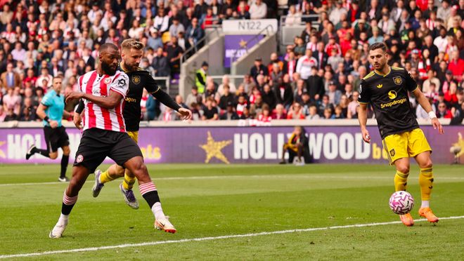 第20分钟,布伦特福德一脚简单的长传再次打穿曼联的防线,巴因德尔飞身扑出对方的传中,伊戈尔·蒂亚戈近距离破门。