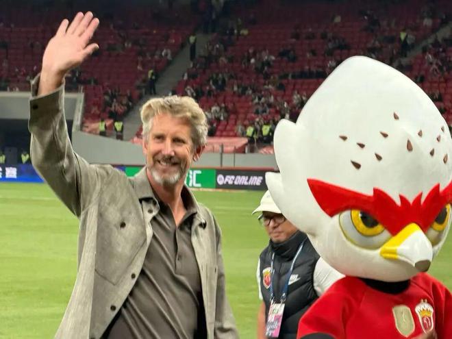 本场比赛赛前,前曼联功勋门将范德萨携海港全新吉祥物“伊戈”亮相浦东足球场。昨天,这位荷兰门将就已经来到上海,在白玉碗外与球迷进行互动。