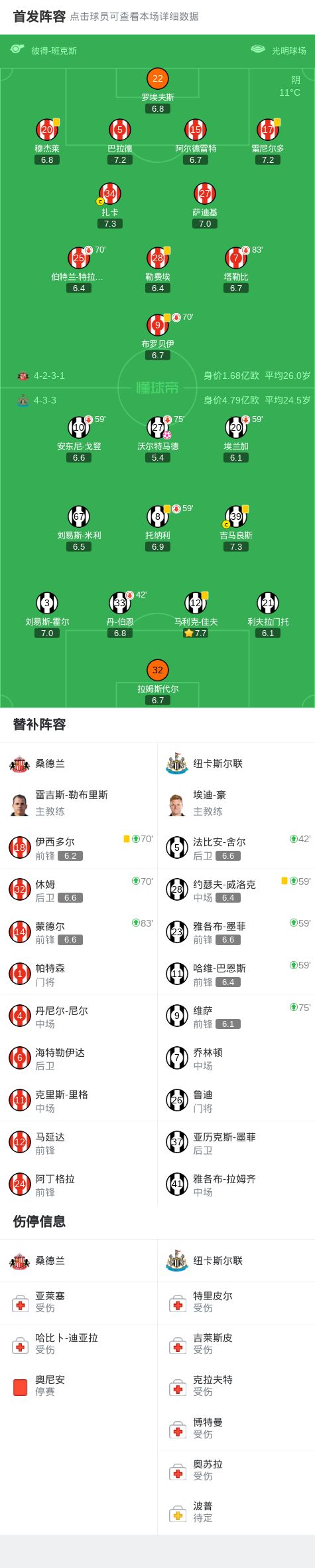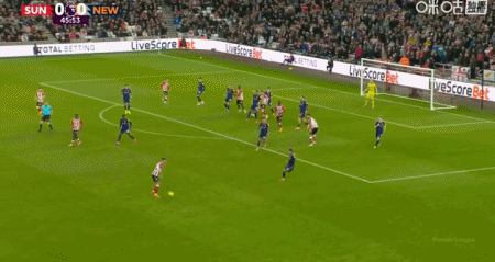 第46分钟,沃尔特马德头球不慎送乌龙,桑德兰1-0纽卡